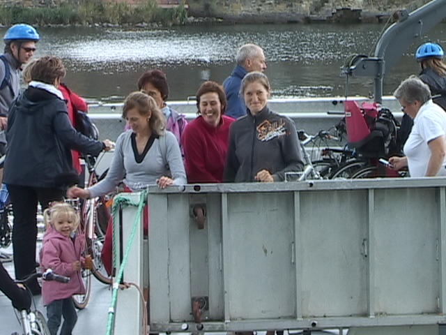 A la demande générale, nous reprenons le chemin vers Maastricht pour cette balade cyclo familiale à succès! C'est une balade qui n'a pas de familiale que le nom. Et pour cause: on y croise des familles au complet venues se mêler les roues dans cette aventure d'un jour. Gaston, Diane, Valentine et Justin; Philippe, Nancy, Sylvain et Florian; Thierry, Isabelle, Thibaut, Quentin et Maxime; tous se souviendront longtemps encore de leurs exploits cyclistes vers Maastricht. Ce qui d'ailleurs méritait bien un méga ravito. J'en ai encore les doigts qui tremblent... plus de 100 crêpes enroulées pour ces accros de Roule ta bosse. Mais comment ne pas les chouchouter quand on sait que certains sont venus de si loin. Béné (alias Titi) a quitté sa terre lointaine de Vissoule ce matin. Bercée par la Meuse, elle s'endormira même à bord du Beau Pays de Liège, fatiguée par le voyage... ou rêvant déjà d'autres périples? Sébastien, de Hannut, habitué des balades les plus sportives, ajoutera quelques kilomètres à son compteur en sillonnant Maastricht avant d'embarquer avec nous vers Liège. Jamais rassasié! Tours et détours dans Maastricht pour un maatjes, un café ou des emplettes... il faut maintenant regagner le bâteau qui va bientôt lever l'ancre. Soudain, Bruno et Lorena bondissent sur la passerelle! Ouf, de justesse! On se presse sur le pont avant pour ne rien rater... tandis qu'Isabelle et Thierry, enlacés, assis par terre, ont déjà les yeux fermés. Le bonheur est total!