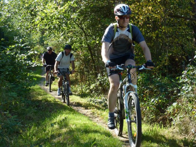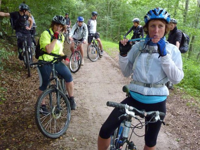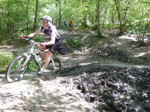 Dans les bois... Oui, oui! roulons dans les bois... Par une belle journée de printemps, d'été, d'automne, ou même d'hiver, le vtt, c'est l'aventure toutes saisons. Et nos cyclistes débutants sont toujours motivés pour une bien belle découverte forestière. Passée la première "petite côte" où tout le groupe pousse en cadence sur les pédales, le peu de goudron emprunté laisse vite place aux sentiers roulants. Et les Roule ta bosse voguent de surprises en surprises. Pascal n'a pas son pareil pour trouver de la lingerie en pleine forêt, Isabelle a le regard qui se trouble quand elle aperçoit les crêpes du ravito-maison, Eric ne pense qu'à se rouler dans la boue gluante (quel tombeur celui-là), Benja a toujours besoin de p-cul, Claude: "Viens par ici, ce n'est pas la bonne direction, Clauuuude", et Nathalie d'encore pousser quelques cris en pleine glissade. Quant à Christel, elle prend tellement goût au vtt qu'elle se lance pour notre voyage au Maroc ! Le tout est d'y prendre goût... Et ce n'est pas toujours gagné, croyez-moi, car nos groupes, c'est tout de même à chaque fois "du grand n'importe quoi"... Signé: un animateur désabusé qui ne maitrise rien... heureusement.