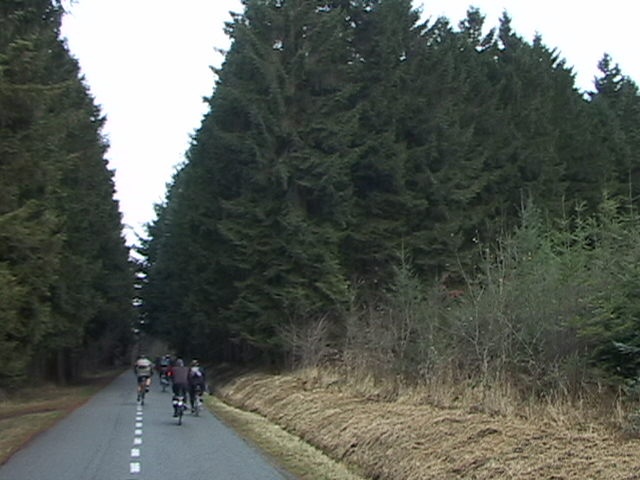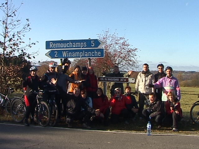 Pour la dernière de l'année, départ bien matinal devant la gare de Theux pour nos 14 cyclistes, braves et courageux. Le parcours bien vallonné démarre fort par une longue ascension jusqu'au domaine de La Reid. La route prend alors des allures de grande allée, traversant les pessières vert sombre...